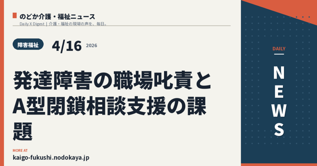 発達障害の職場叱責とA型閉鎖相談支援の課題